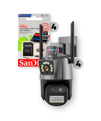 Kit 4.10 – 04 Câmeras P11 Lente Dupla (externas) + 04 Cartões 32GB + Instalação, Configuração e Materiais