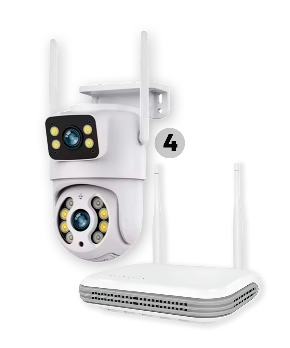 Kit 4.9 – 04 Câmeras A28b Lente Dupla (externas) + NVR 500GB + Instalação, Configuração e Materiais